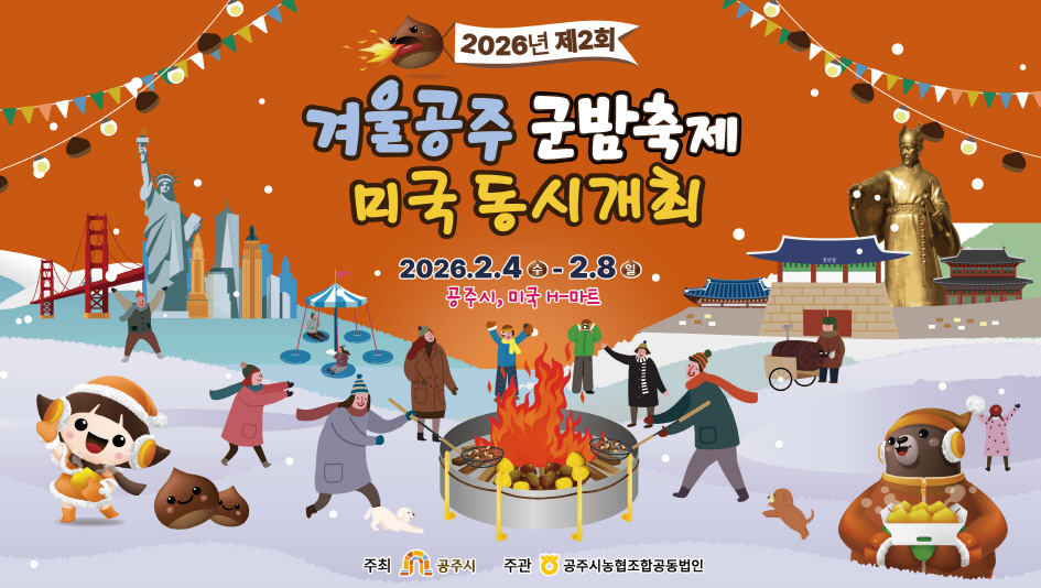 알밤의 고장 충남 공주시가 2025년 군밤축제의 성공을 발판 삼아 대한민국 밤 산업의 미래를 여는 대형 겨울 행사에 나선다. 공주시(시장 최원철)는 2026년 2월 4일부터 8일까지 5일간 금강신관공원 일원에서 ‘제9회 겨울공주 군밤축제’와 ‘2026...