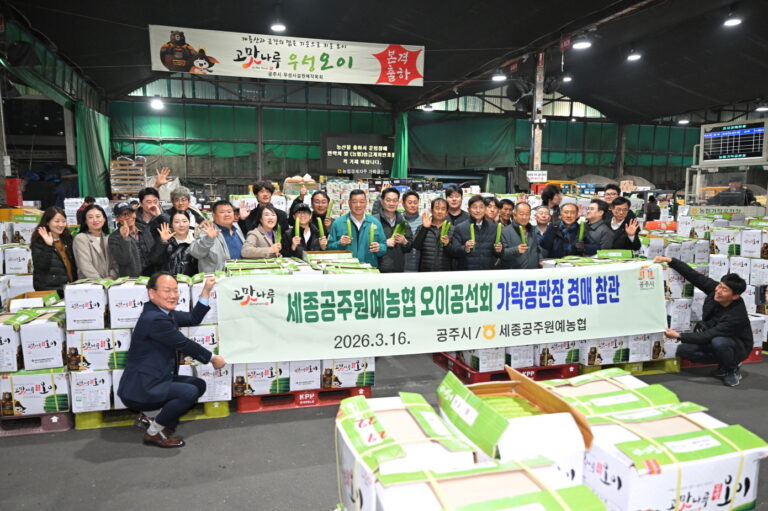 오이 공동선별·공동출하 본격화…도매시장 관계자와 간담회 개최 공주시가 수도권 농산물 유통 거점에서 지역 농산물 홍보에 나섰다. 공주시는 지난 16일 가락동 농수산물도매시장을 방문해 지역 농산물 판로 확대를 위한 홍보 활동을 펼쳤다고 밝혔다....