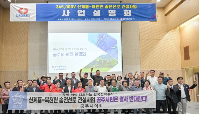 한편 이날 예정되어 있던 신계룡-북천안 송전선로 건설 사업 주민설명회는 공주시의회와 공주시 주민의 반대로 개최되지 못하였다.(공주뉴스=이정미 기자)