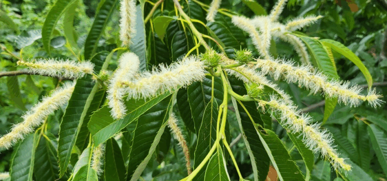 (사진 설명 : 밤꽃이 흐드러지게 피어 있는 밤나무)