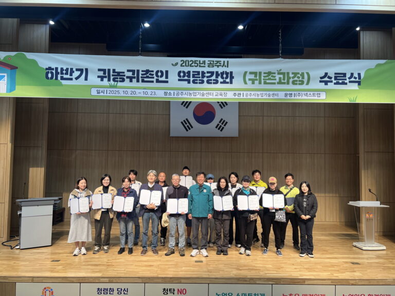 공주시(시장 최원철)는 귀농귀촌인의 안정적인 초기 정착을 지원하기 위해 마련한 2025년 하반기 ‘귀농귀촌인 역량강화 교육’을 성공적으로 마쳤다고 31일 밝혔다. 이번 교육은 귀농·귀촌을 희망하는 예비 정착민과 초기 정착자를 대상으로 시행착오를 줄이고, 농촌 생활에 필요한 실질적인 정보와 지식을 제공하기 위해 진행됐다.