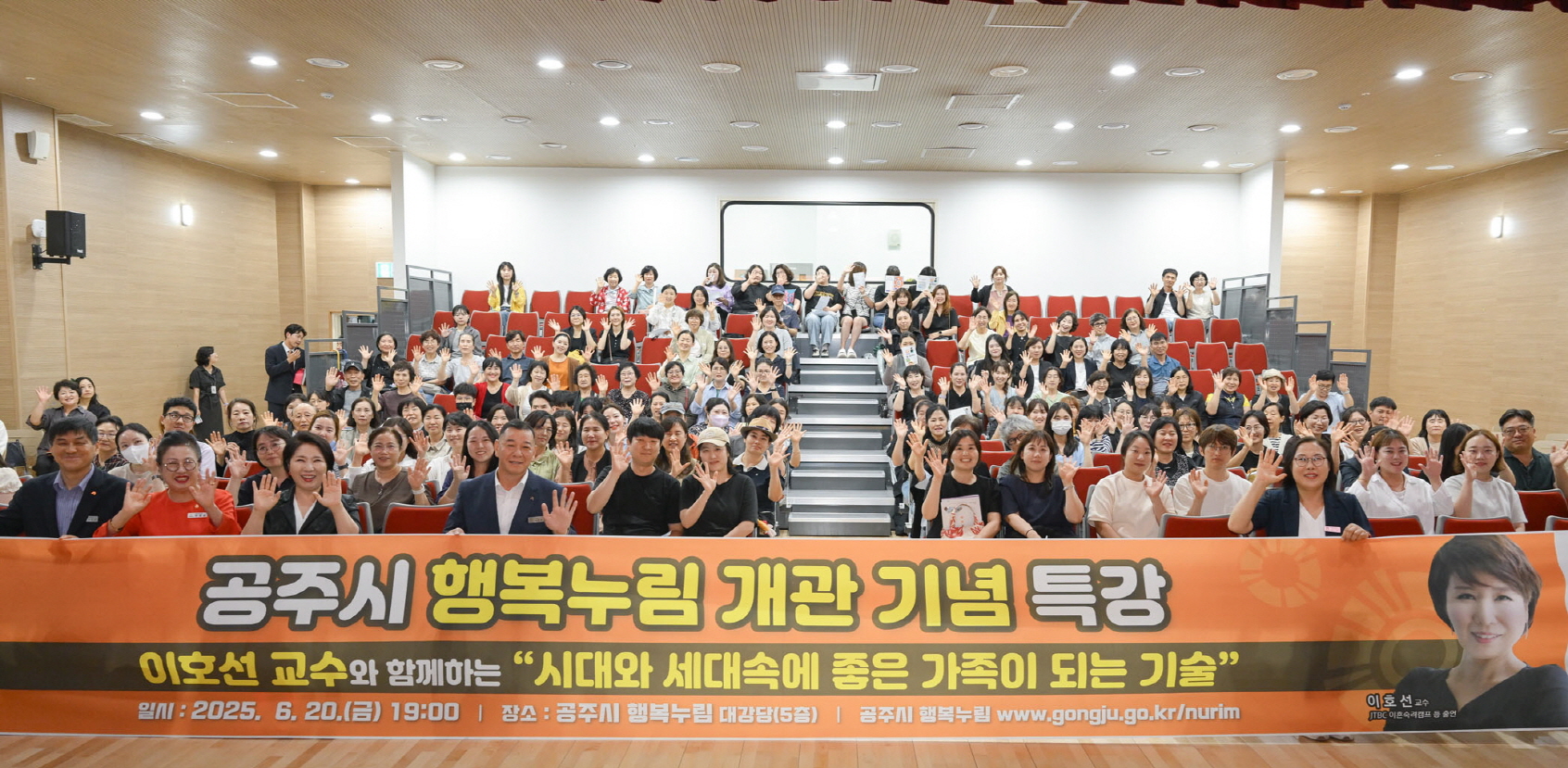 “가족이란, 함께 자라는 관계입니다” 시민들과 공감의 시간 가져 공주시(시장 최원철)는 시민 복합문화공간 ‘행복누림’의 개관을 기념해 지난 20일 숭실사이버대학교 상담심리학과 이호선 교수를 초청해 특별강연을 성황리에 개최했다. ‘시대와 세대 속에 좋은 가족이...