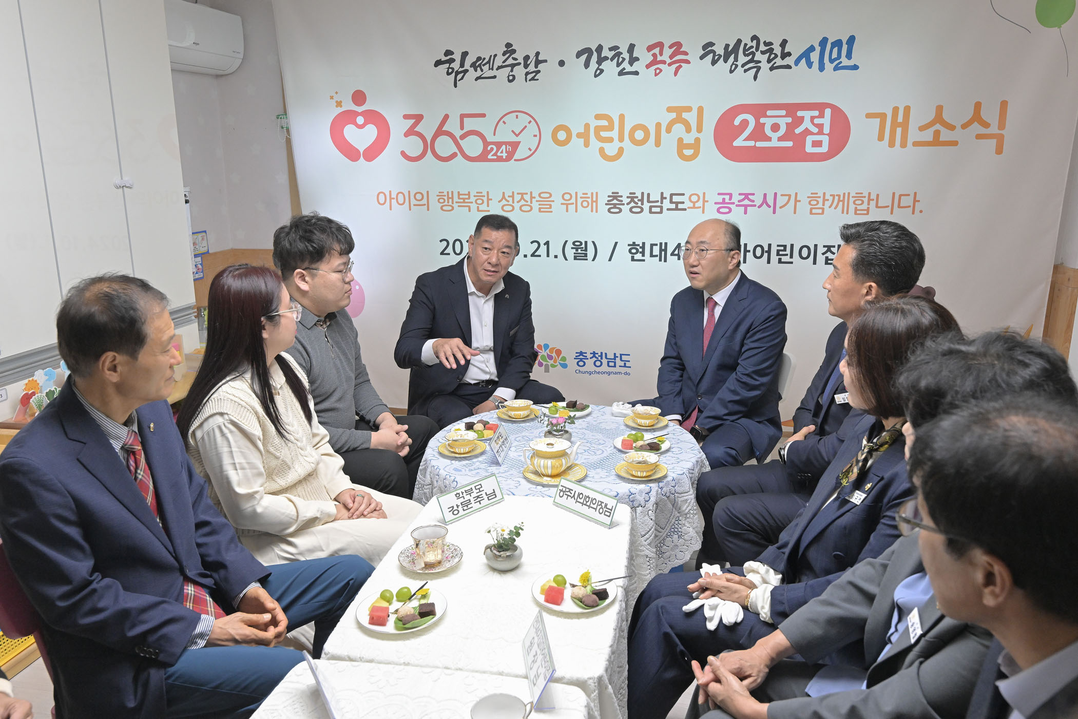 공주시(시장 최원철)는 지난 21일 현대4차꼬마어린이집에서 최원철 시장과 충청남도 행정부지사, 어린이집 관계자 등이 참석한 가운데 ‘힘쎈충남 365×24 어린이집’ 2호 개소식을 개최했다. 힘쎈충남 365×24 어린이집은 ‘힘쎈충남 풀케어 돌봄정책’의 세부 계획 중 하나로 보육...