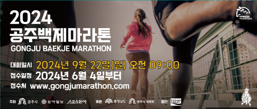 2024년 공주백제마라톤대회가 접수를 시작했다. 이 대회에는 총 5가지 코스로, 풀코스(참가비 5만원), 32km(참가비 5만원), 하프코스(참가비 3만원), 10km(참가비 3만원), 5km(참가비 1만원) 등에 참가할 수 있다. 대회는 오는 9월 22일 열릴 예정이다. (공주뉴스=이정미기자)