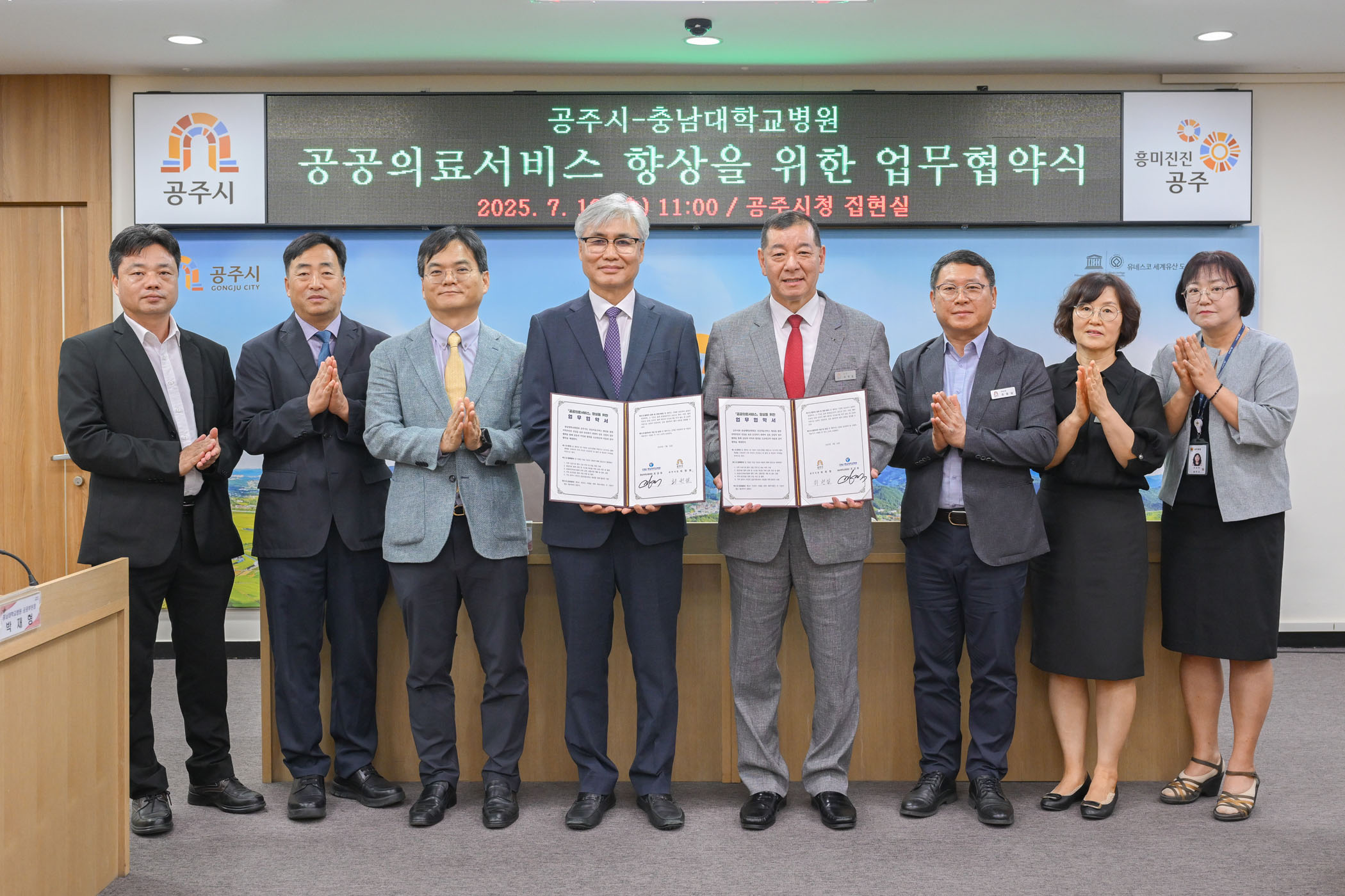 공주시(시장 최원철)는 16일 시청 집현실에서 충남대학교병원(병원장 조강희)과 지역민의 공공의료서비스 향상을 위한 업무협약을 체결했다고 밝혔다. 이번 협약으로 공주시민은 지역 의료기관을 통해 충남대학교병원과의 진료 연계를 보다 체계적이고 전문적으로 받을 수 있게 돼 신속한...
