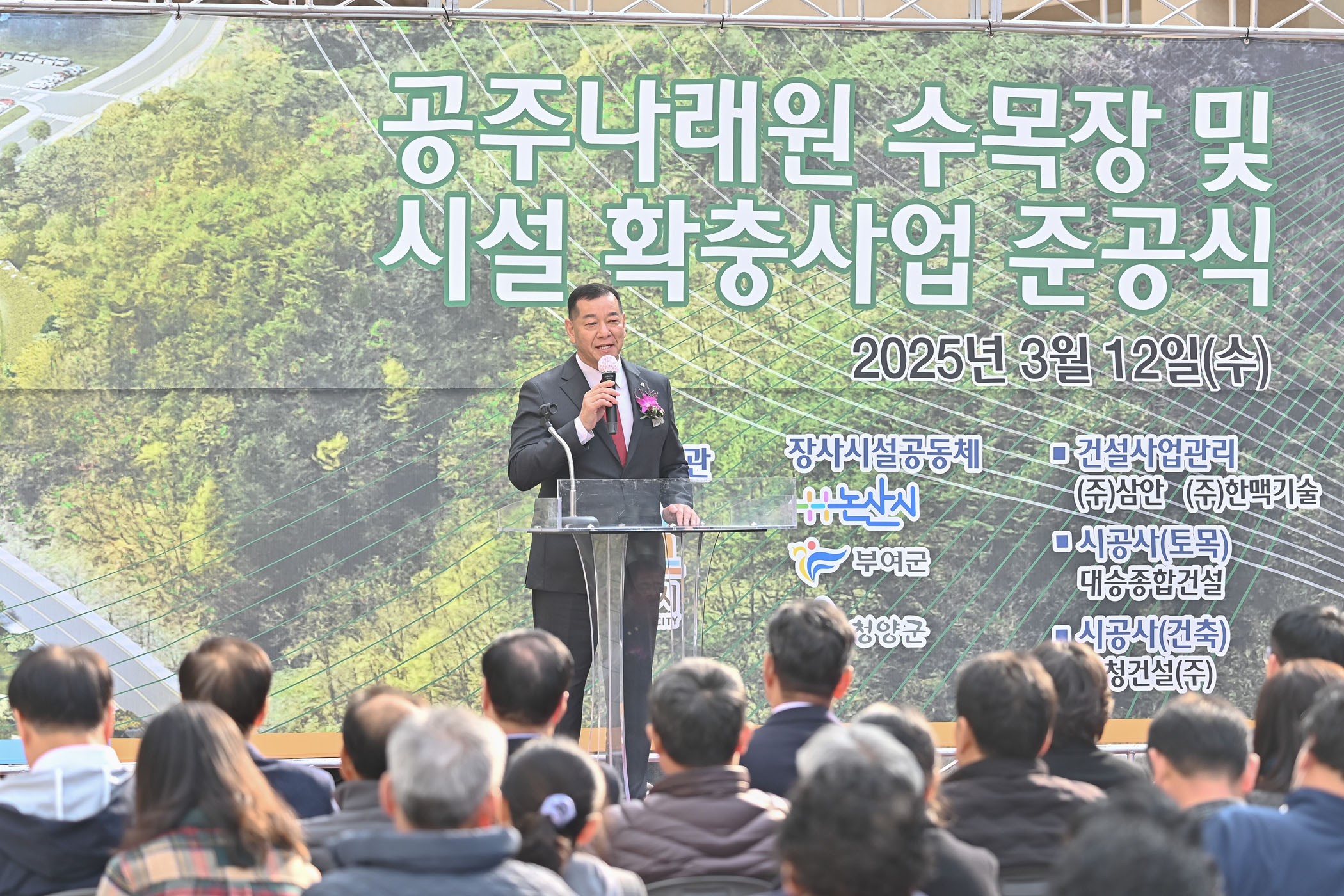 공주시(시장 최원철)는 ‘공주 나래원 수목장 및 시설 확충 사업’이 완료됨에 따라 지난 12일 준공식을 개최했다고 밝혔다. 이날 행사에는 최원철 시장과 시·도의원, 지역 주민 그리고 나래원 장사 시설을 공동 이용하는 논산시, 부여군,...