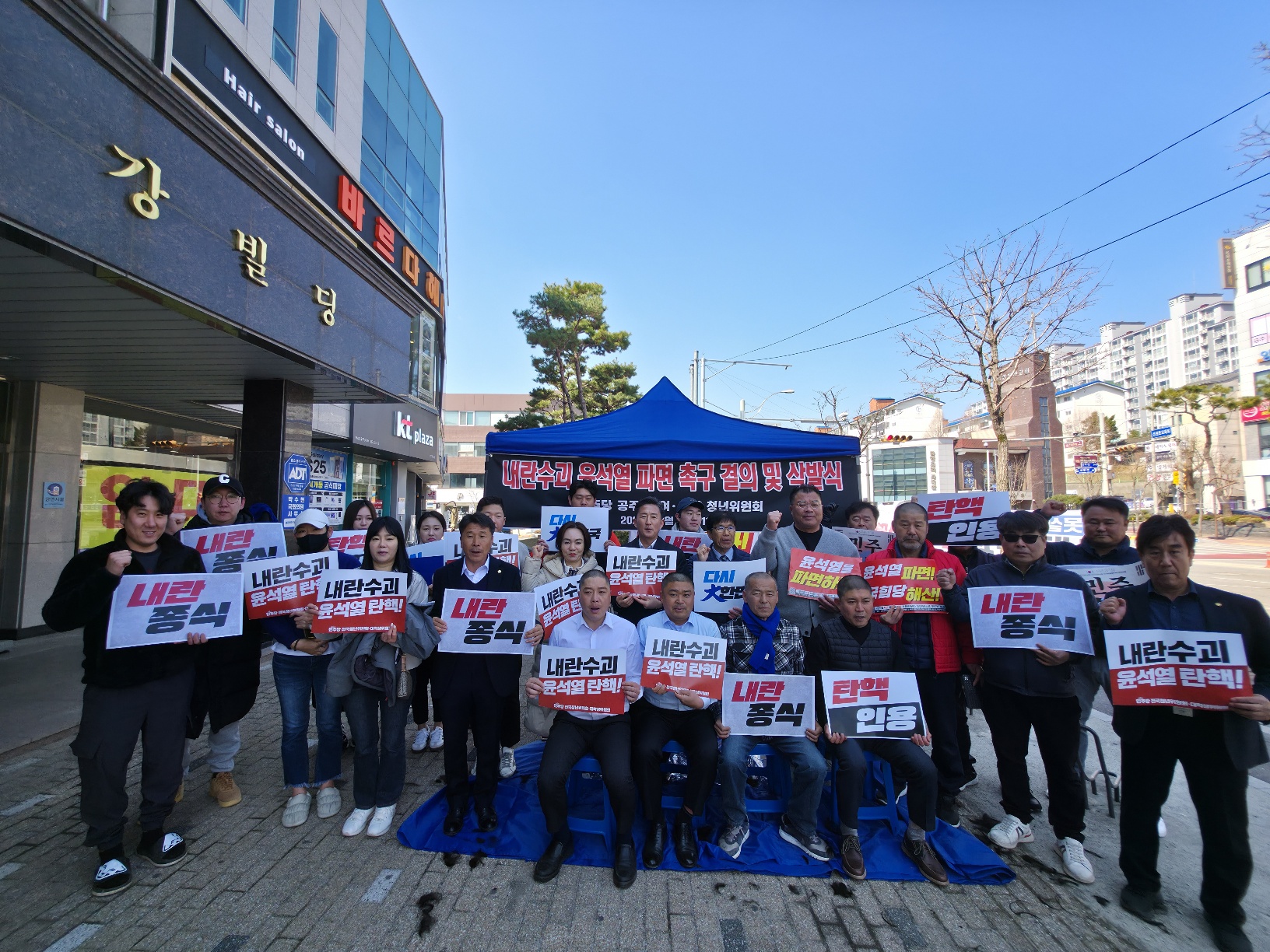 헌법과 법률을 위반한 윤석열 대통령의 탄핵을 촉구하는 삭발 시위가 공주에서 열렸다. 17일 오전 11시 공주시 신관사거리에서 더불어민주당 서승렬의원(이인/탄천/계룡/반포), 공주부여청양 청년위원회 윤은태 위원장(42, 공주시 우성면)과 조희제 사무국장(38, 공주시 의당면), 조유상 전청년위원장(53,공주시 탄천면)이...
